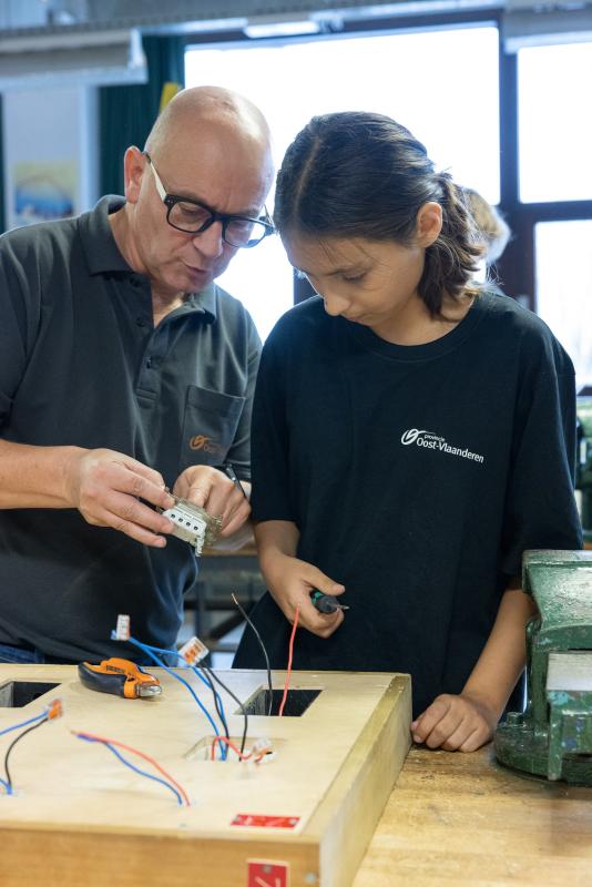 “Ik zet in mijn lessen elektriciteit vooral in op succeservaringen. Daarbij tracht ik leerlingen steeds individueel uit te dagen op hun niveau, met differentiatie en waar nodig remediëring. Als je begrijpt hoe een schakeling werkt, zelf het schema tekent, draden trekt en met succes je lamp doet branden, wordt dat namelijk plezant. Iemand die daar voldoening uit haalt, een goede fijne motoriek heeft en nieuwsgierig is om meer te ontdekken over elektriciteit of mechanica, zit hier zeker op de juiste plaats."